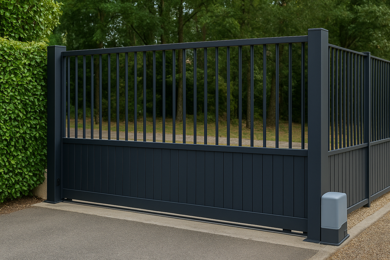 Le portail coulissant est idéal pour les entrées en pente ou les espaces réduits. Il offre aussi une meilleure résistance au vent.